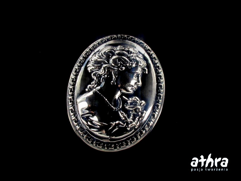 Półfabrykat srebrny, oksydowany, Camea z motywem Versace. Próba Ag 925.