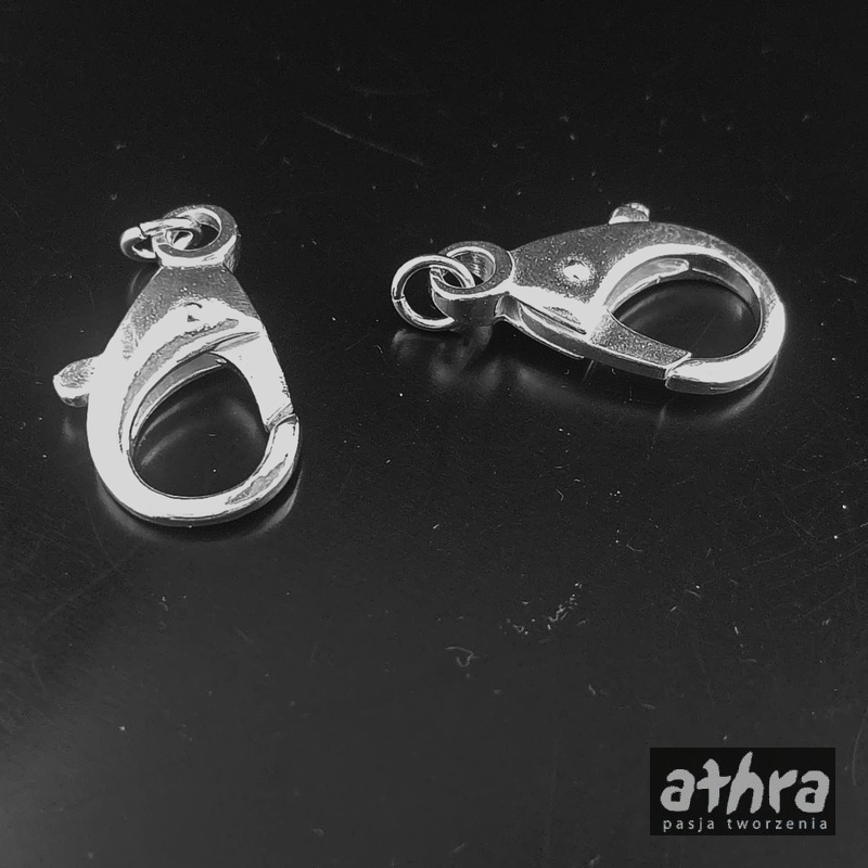 Półfabrykat srebrny, zapięcie typu karabińczyk do łańcuszka czy bransoletki. Próba Ag 925