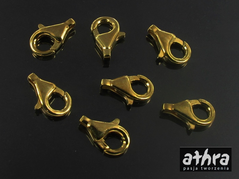 Półfabrykat srebrny, pozłacany. Zapięcie typu karabińczyk. Próba Ag 925