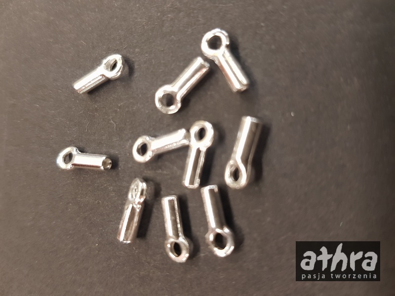 Półfabrykat srebrny, zakończenie do linki stalowej lub rzemienia.