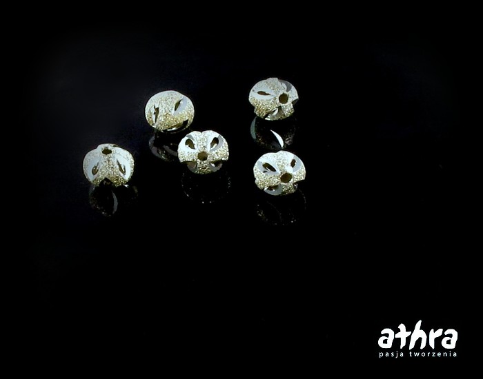Półfabrykat srebrny, kulka brokatowa, nacinana z otworem na wylot.