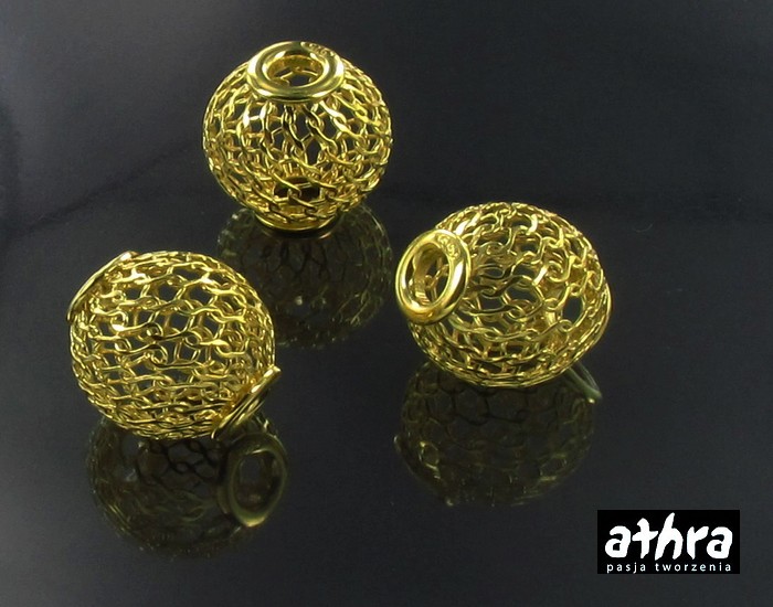 Półfabrykat srebrny, ozdobna kulka pozłacana, jako element do korali.