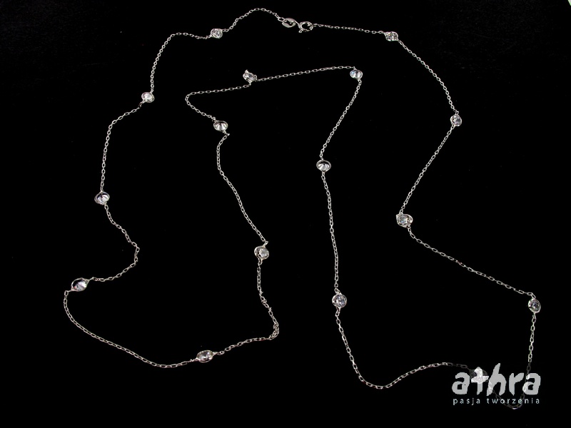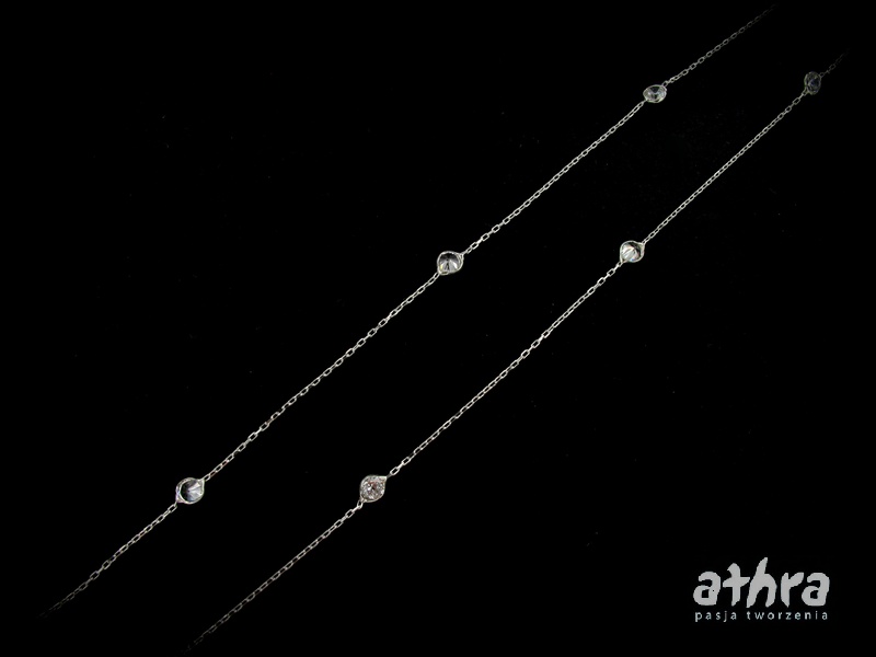 Półfabrykaty ag, rodowane, próba 925, łańcuszek z zapięciem, biała cyrkonia w oprawie co 6 cm, długość 100 cm, cena 1 łańcuszka ok.94 zł/brutto. Zapraszamy do zapoznania się z naszą ofertą www.athra.pl