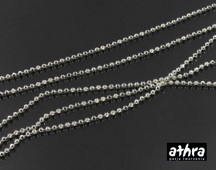 Półfabrykaty srebrne, próba 925, łańcuszek kulkowy, diamentowany, możliwość zakupu dowolnej długości stwarza ogromne możliwości wykreowania bransoletek lub kolii, wystarczy dodać końcówki KDR12 i zapięcie np AM055.Zapraszamy do zapoznania się z naszą ofertą www.athra.pl