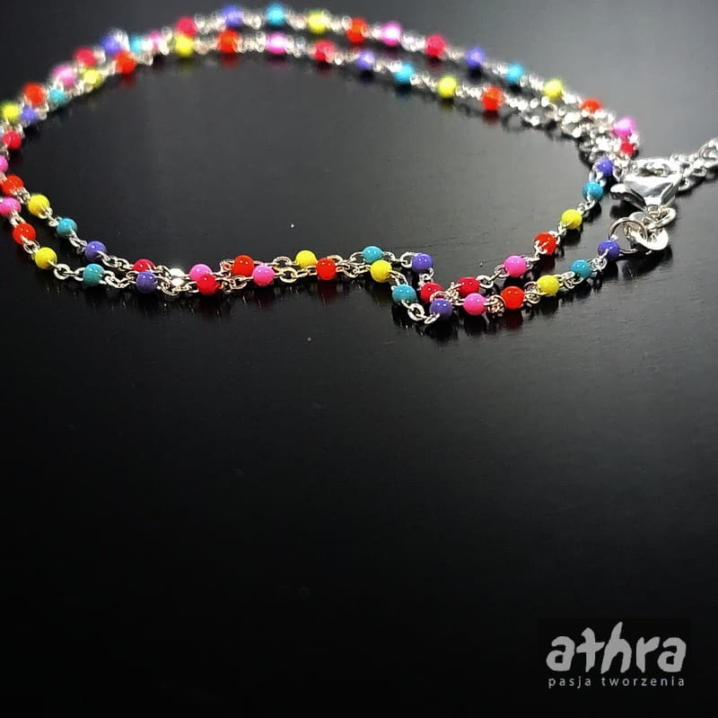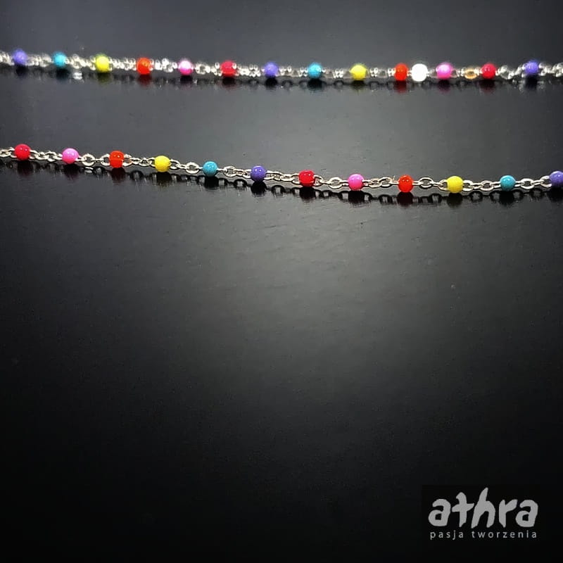 Elementy srebrne do biżuterii, próba 925, łańcuszek z emaliowanymi oliwkami i zapięciem, celebrytka długość 38 cm.