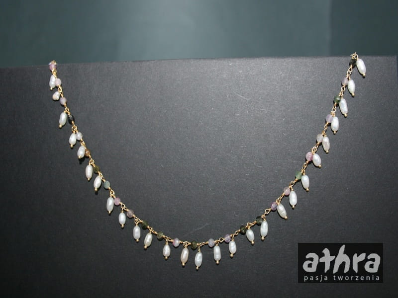 Łańcuszek srebrny z perłami i turmalinami, PERTUR