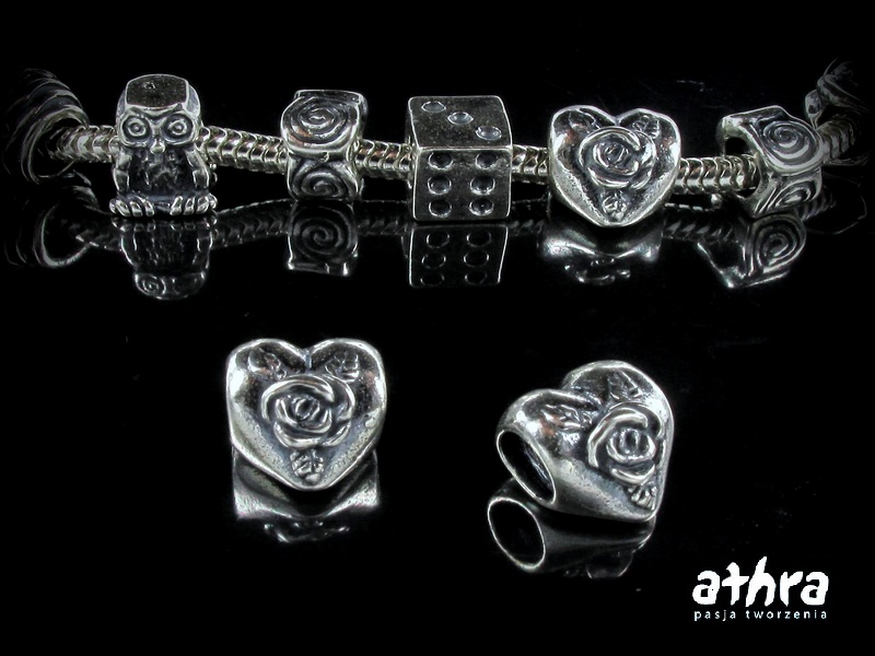 Przekładka modułowa serce z różą srebrna próba 925. Zapraszamy do zapoznania się z naszą ofertą na www.athra.pl