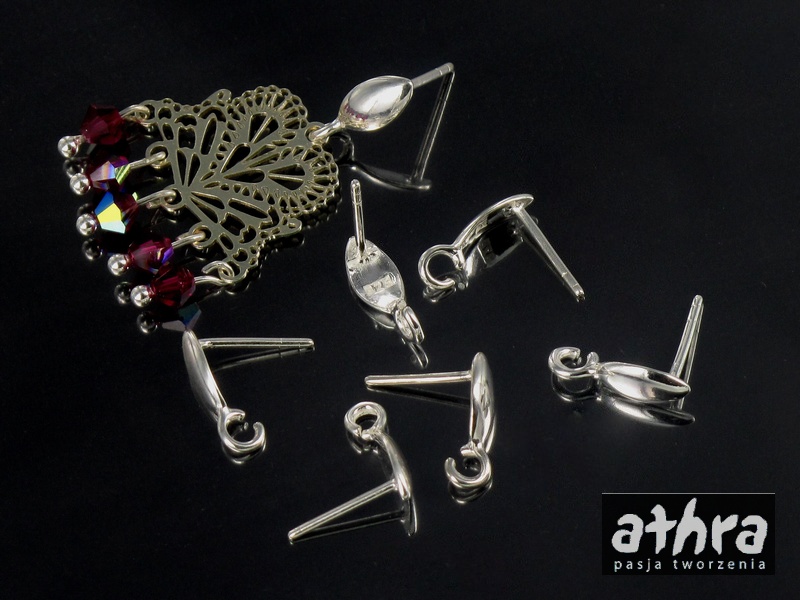 Półfabrykat srebrny, kolczyk sztyft markiza z kółkiem otwartym do podwieszania. Próba Ag 925