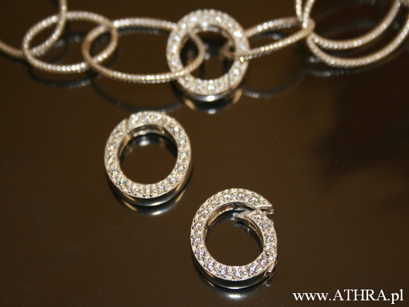 Półfabrykat srebrny, zapięcie ozdobne, wysadzane cyrkoniami do korali.
