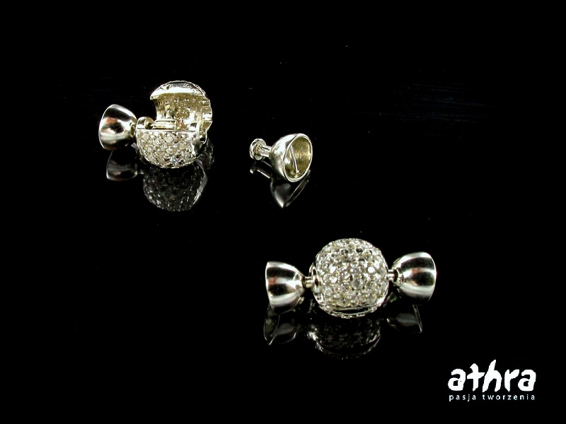 Półfabrykat srebrny, zapięcie ozdobne do korali z cyrkoniami.