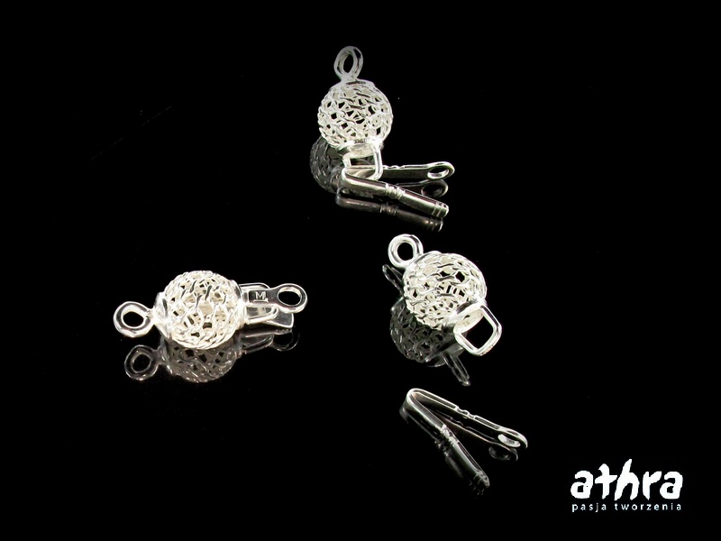 Nazwa: Zapięcie srebrne szufladkowe, ażurowa kulka, na jeden sznur