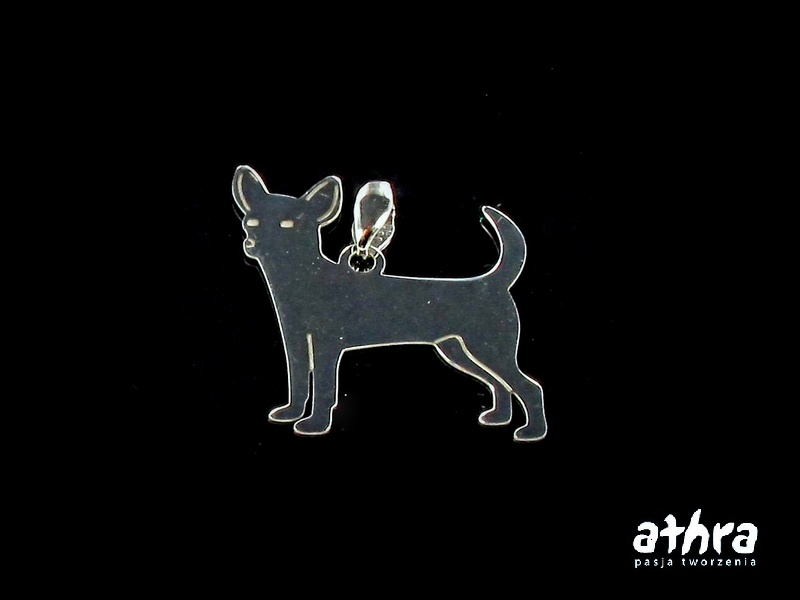 Nazwa: Zawieszka laserowo wycinana, rodowana, Chihuahua