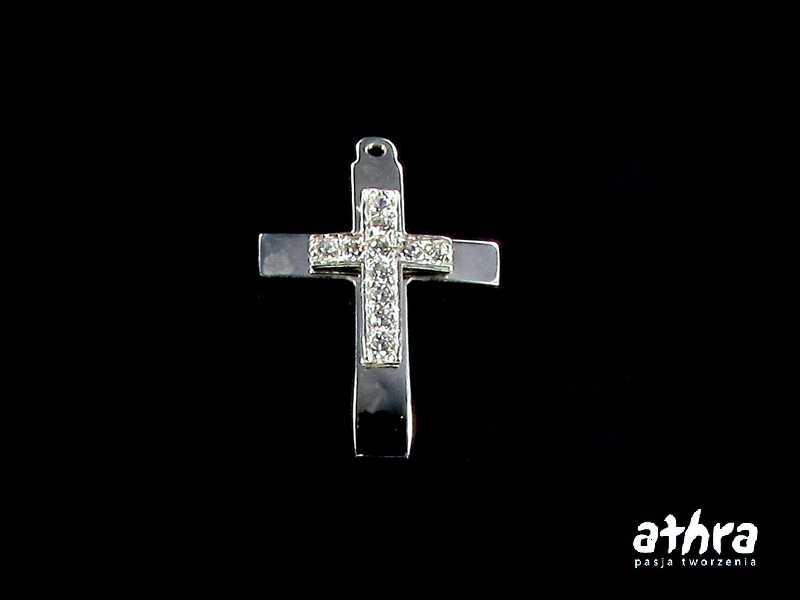 Nazwa: Zawieszka krzyżyk laserowo wycinana, z cyrkoniami, rodowana