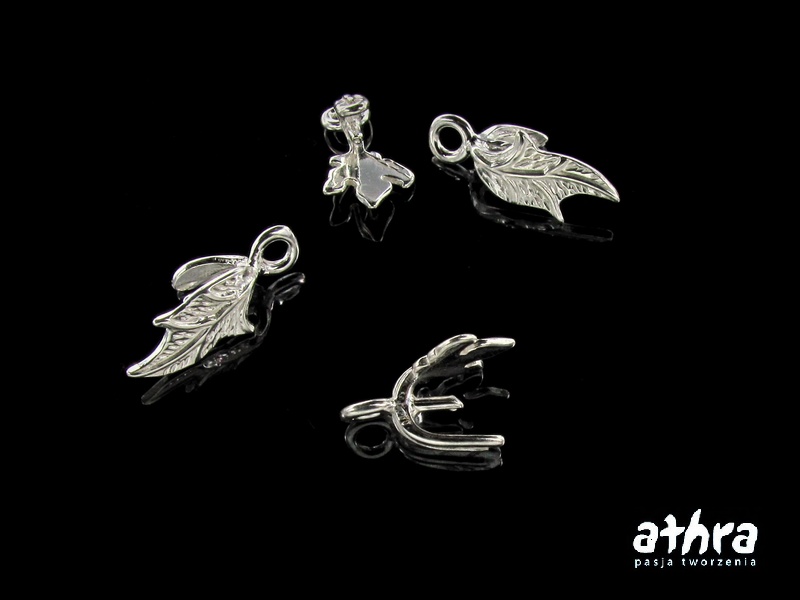 Srebrna zawieszka z bolcem w kształcie listka pod mały kamień. Próba Ag 925.