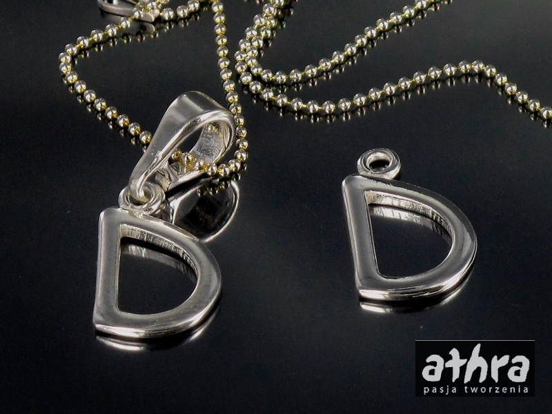 Półfabrykat srebrny. Próba 925. Zawieszka literka "D". Zapraszamy do zapoznania się z naszą ofertą
