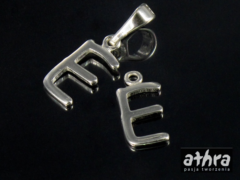 Półfabrykat srebrny. Próba 925. Zawieszka literka "E". Zapraszamy do zapoznania się z naszą ofertą