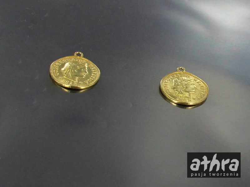 Półfabrykaty srebrne, próba 925, zawieszka moneta, pozłacana. Znakomity element bransoletki lub wisiorek na łańcuszku. Zapraszamy na zakupy do hurtowni ATHRA lub online www.athra.pl