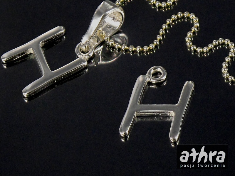Zawieszka z mosiądzu, posrebrzana literka "H", LITH/S