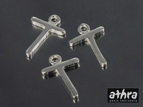 Zawieszka z mosiądzu, posrebrzana literka "T", LITTS